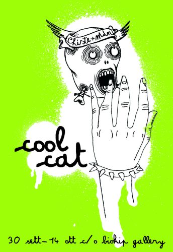 “Cool Cat” raccoglie le diverse creazioni di due ragazzi diversi ma cresciuti nello stesso ambiente, Chiste e MDN si rifanno all’immaginario figurativo classico del mondo dello skateboarding mentre i soggetti delle loro opere rispecchiano il loro gusto per uno stile in bilico tra ironia e cinismo. Uno stile al limite del macabro, quasi pulp, ma portato all’estremo e trattato con humour trash, graffiante e dissacratore. Quello che propongono Chiste e MDN è un satura lanx di tecniche, un piatto misto composto da lavori di tutti i tipi. Illustrazioni e disegni su carta con