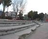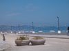Piazza molto grande situata sul lungo mare con un muretto intorno a quasi tutta la piazza (con estremità rotonda), alto 40-50 cm, pavimento liscio, 2 gradoni da ollare o da slaidare che però danno sul marciapiede che è largo solo 3 metri.